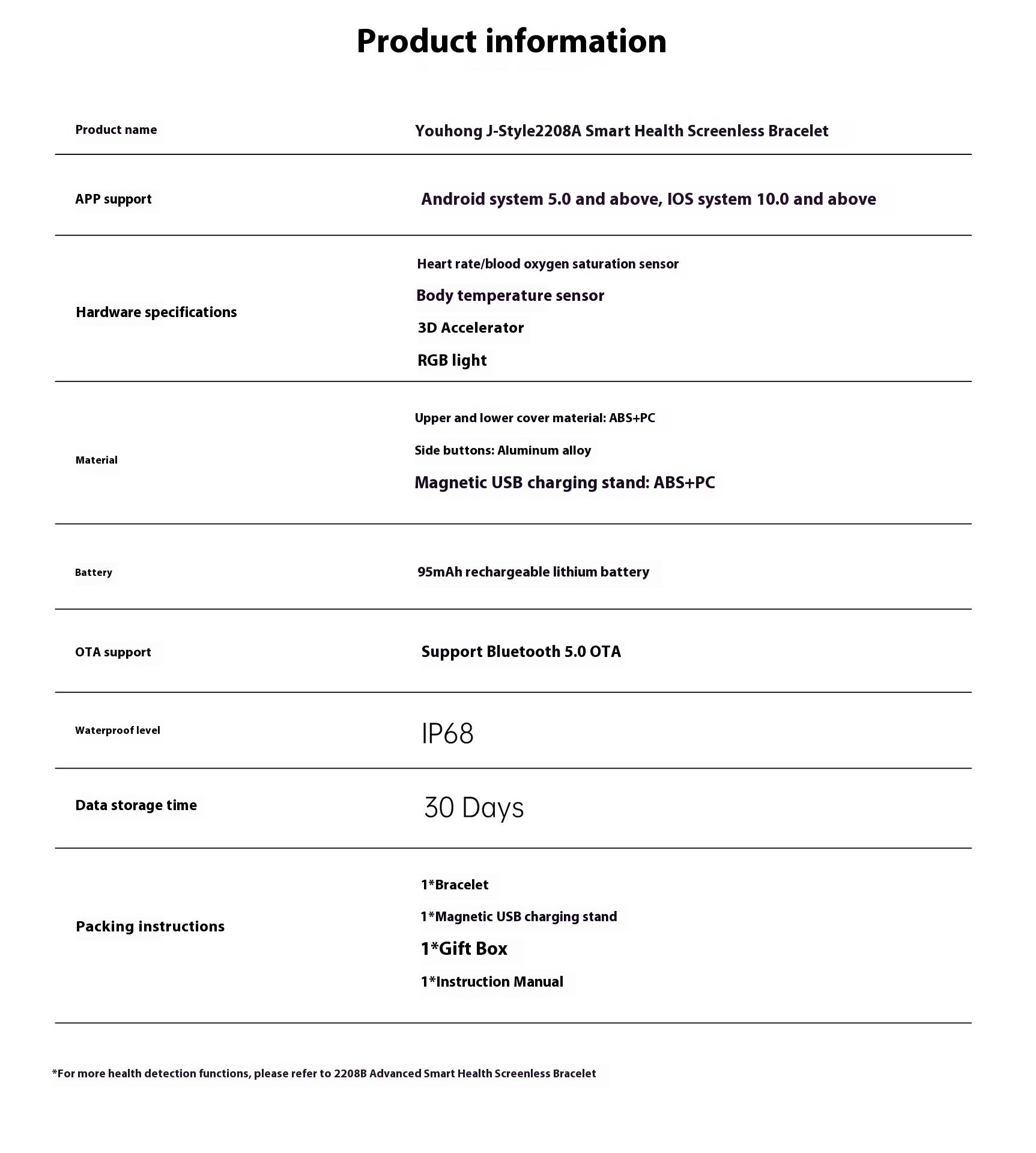 1 * Bracelet 1 * Magnetic USB charging dock 1 * Gift box 1 * User manual